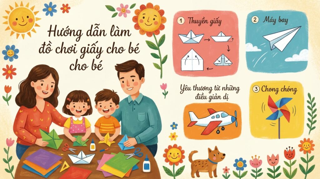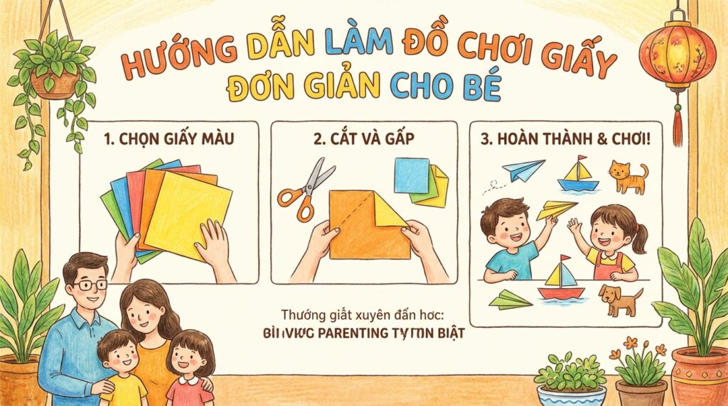 Trong nhịp sống hiện đại, việc tìm kiếm những hoạt động vừa giúp trẻ vui chơi vừa phát triển tư duy sáng tạo luôn là điều các bậc phụ huynh quan tâm. Làm đồ chơi đơn giản từ giấy không chỉ mang lại niềm vui mà còn giúp các bé rèn luyện sự khéo léo, kiên nhẫn và khả năng quan sát. Đặc biệt với những gia đình Việt, đây là dịp để cùng nhau gắn kết yêu thương, tạo nên những khoảnh khắc ấm áp và ý nghĩa. Bài viết sẽ hướng dẫn bạn 8 bước làm đồ chơi giấy origami dễ thực hiện, phù hợp cho trẻ từ 6 đến 13 tuổi. Hãy cùng đồng hành để biến những tờ giấy đơn giản thành món đồ chơi thú vị, kích thích trí tưởng tượng của bé nhé!